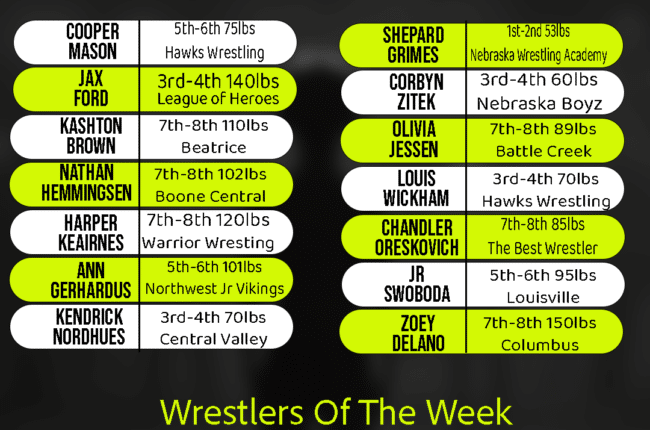 Roxa Rated Wrestlers of the Week Another weekend of hard-nosed competition produced big bracket wins, rankings shakeups, and several standout performances across Nebraska. From top-ranked wrestlers defending their spots to lower-ranked athletes making serious moves…